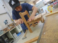 日中は5つのグループに分かれて活動しています。木工作業、クリーニング作業などの作業班と散歩やリハビリ等を行う療育班などがあります。: