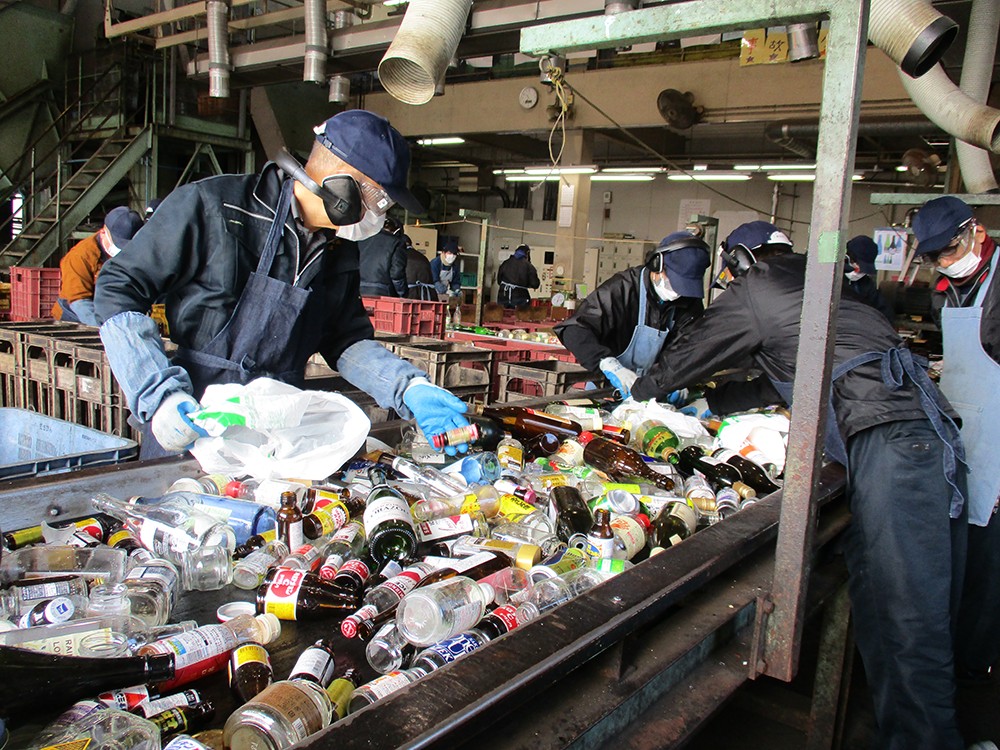 1994年4月にリサイクルみなみ作業所の第2号の施設として港区に開設。市民の皆さんが出された空きびん・空き缶の再資源化のための選別を、名古屋市の委託を受け、高い工賃と地域での暮らしを目標に、就労継続支援B型事業として行っています。環境と福祉との関りを知っていただくために小学生や保健委員の方を中心に広く見学を受け入れています。