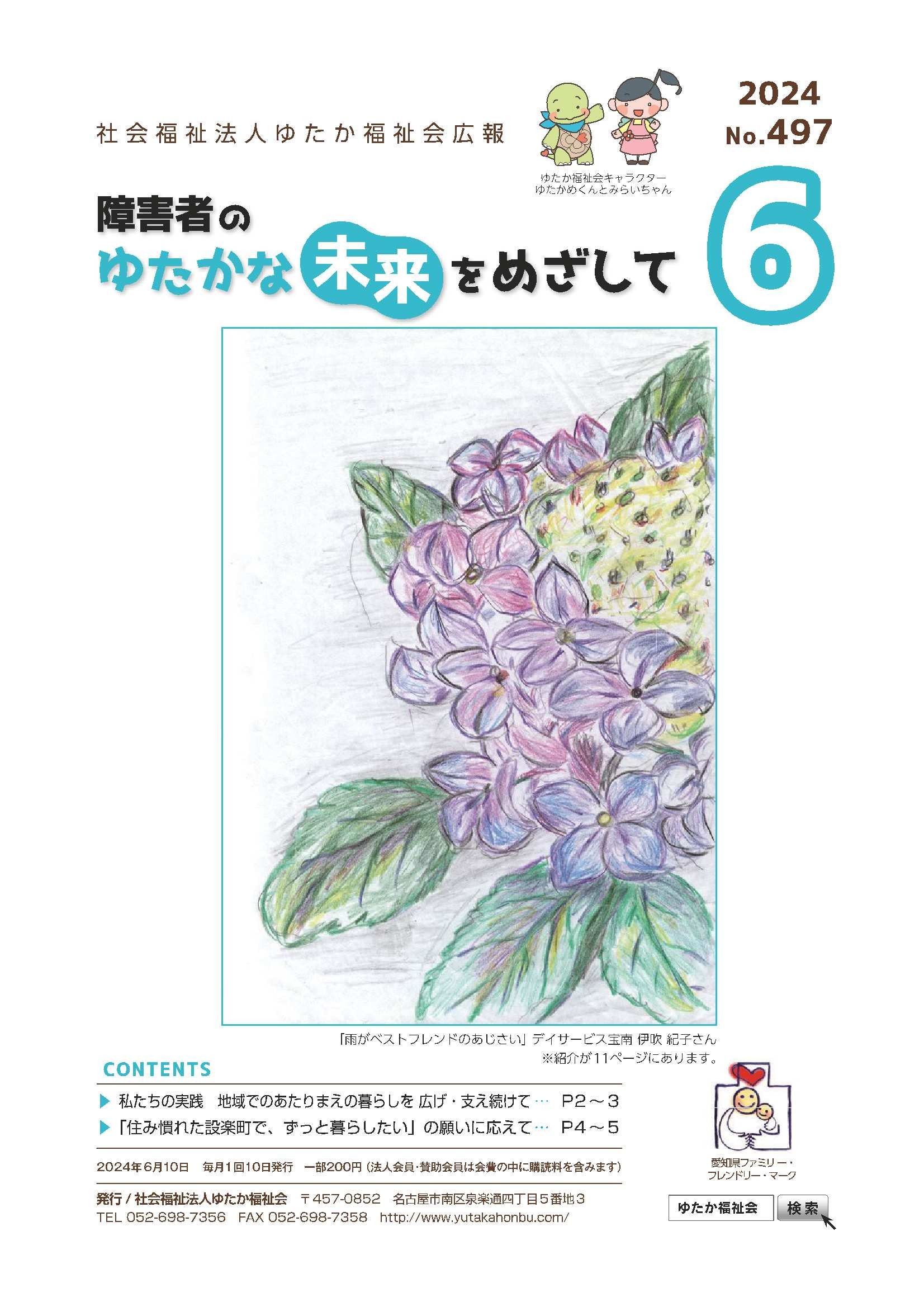 広報活動にゆたか福祉会広報№500を追加しました。【Contents】▶私たちの実践~地域でのあたりまえの暮らしを広げ・支え続けて~▶平和への願い