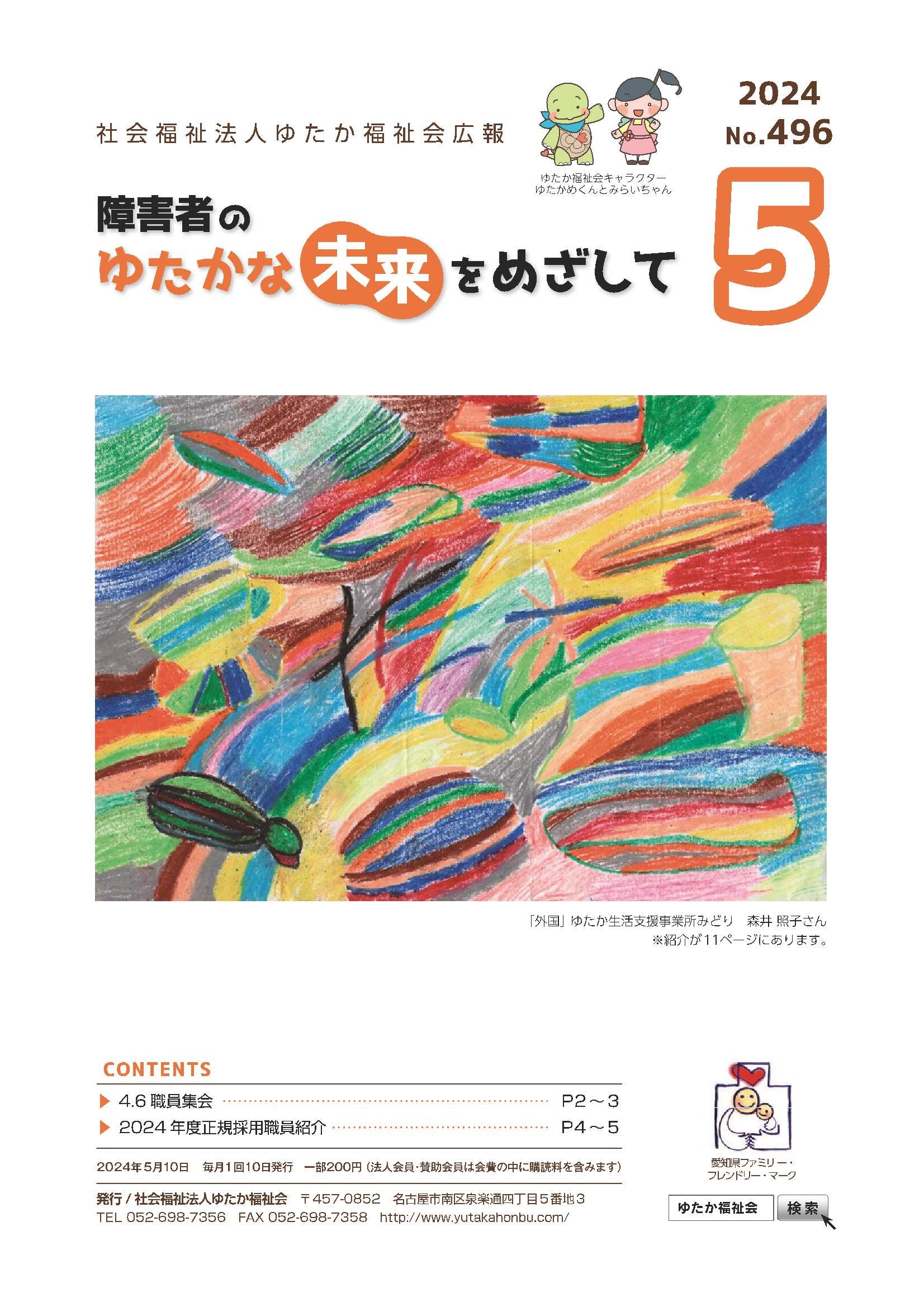 広報活動にゆたか福祉会広報№496を追加しました。【Contents】▶4.6職員集会▶2024年度正規採用職員紹介